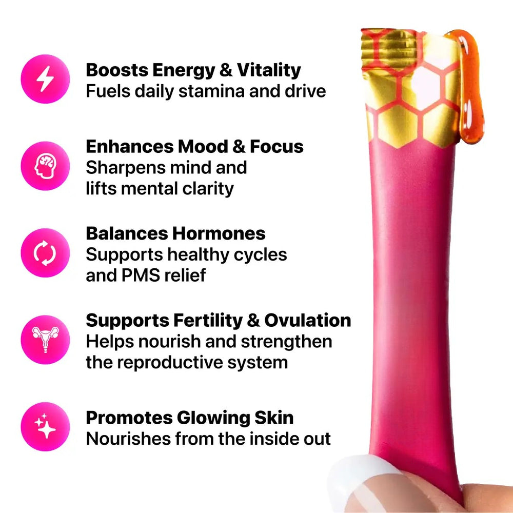 Viele Frauen haben Schwierigkeiten, wirksame und natürliche Lösungen für Energie und allgemeines Wohlbefinden zu finden. Diese Honigstangen bieten eine köstliche und praktische Möglichkeit, Ihren Körper zu nähren und das Gleichgewicht wiederherzustellen.